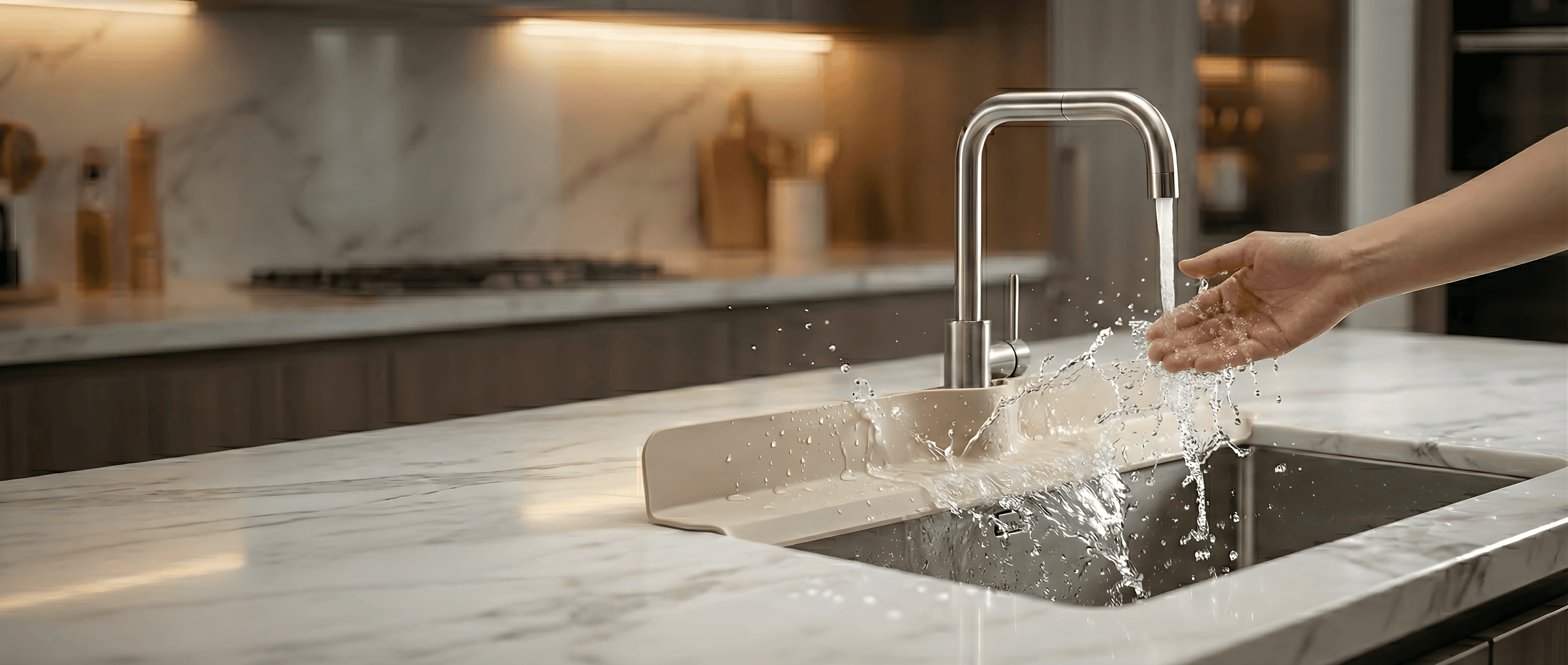 CleanMAT Silicone Sink Splash Guard – 40 cm Anti-Splash Water Barrier with Strong Suction Cups (Pack of 2)